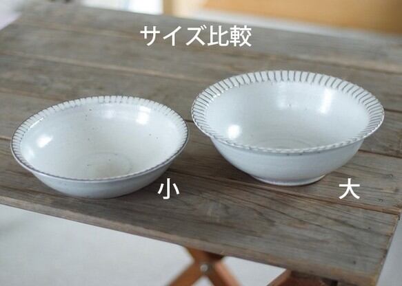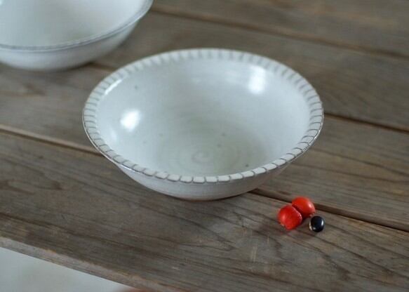 白い釉薬をかけてリムに鎬を施したボウル。